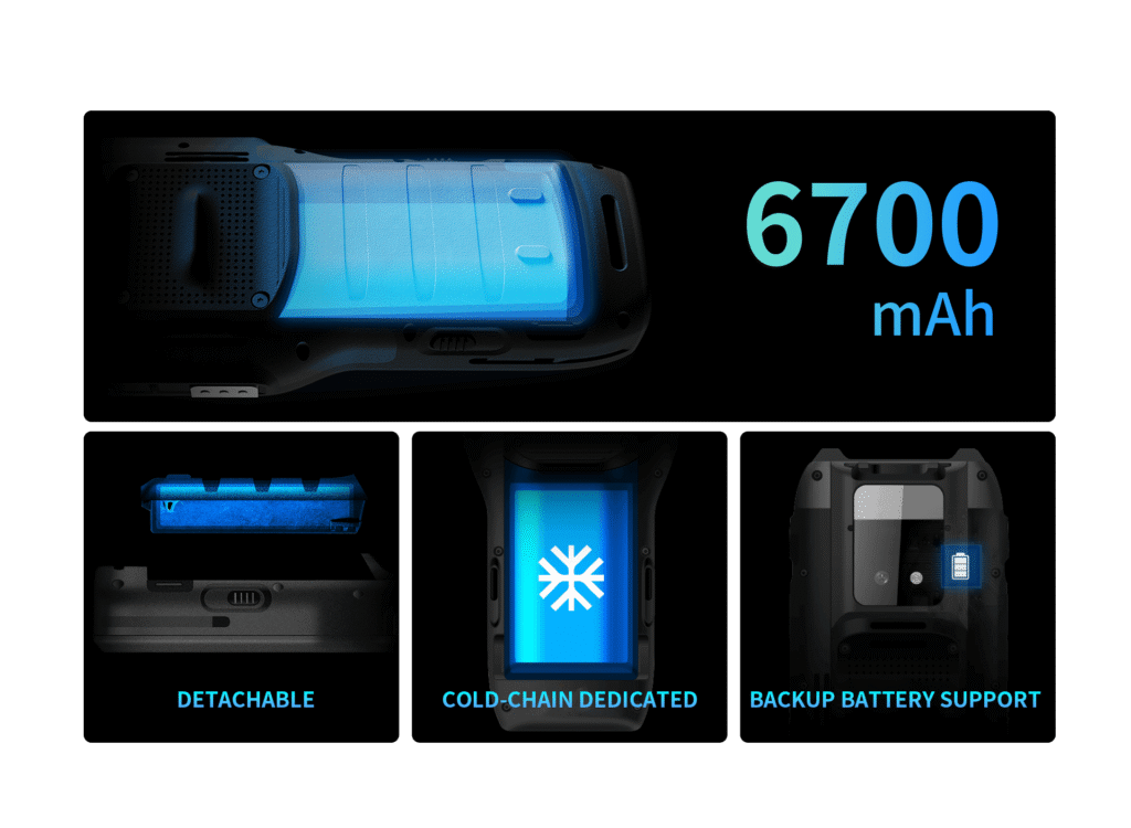Battery 3.85V lithium battery, with 6700mAh(standard), detachable, backup-battery Support;3.85V lithium battery, with 5250mAh(optional), detachable, backup-battery Support;Execution standard: GB31241-2022